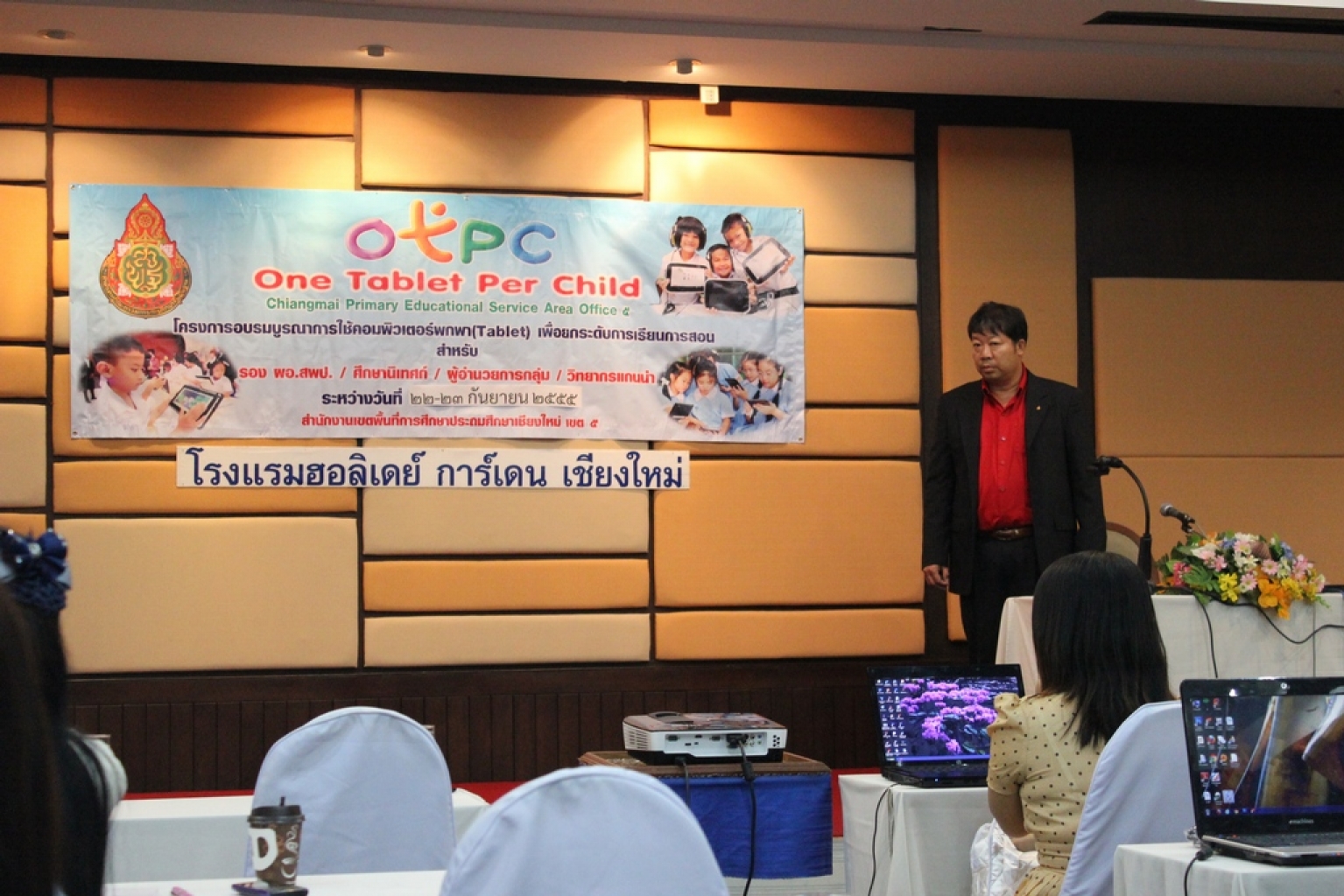ผอ.รร.บ้านหางดง เข้ารับการอบรมเป็นวิทยากรหลักเรื่อง Tablet ของเขตฯ..........ผอ.ขัตติยะ ไวยกุล เข้ารับการอบรมเป็นวิทยากรหลักเรื่อง เครื่องคอมพิวเตอร์พกพา Tablet เพื่อการเรียนการสอน ของ สพป.ชม.๕ เมื่อวันที่ ๒๒-๒๓ ก.ย.๒๕๕๕ ณ โรงแรมฮอลิเดย์การ์เด็น เชียงใหม่ จัดโดย กลุ่มนิเทศติดตามและประเมินผลการศึกษา มีท่านรองฯสุภาพ กาวิ รอง ผอ.สพป.ชม.๕ เป็นประธานเปิดการอบรม ศน.สุนิทรา พรมมล ผอ.กลุ่มนิเทศ เป็นประธานปิดการอบรม บรรยายการเป็นกันเอง ได้รับความรุ้และทักษะของวิทยากรหลักและวิทยากรผู้ช่วยด้วยทั่วกันค่ะ
